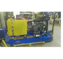 Дизельные гидростанции это полностью автономные насосные агрегаты с двигателем до 400 лошадиных сил, с максимальной подачей масла до 250 л/мин под давлением до 700 бар. Гидростанции обеспечивают работу погружных шламовых помп, буровых установок, противофонтанного оборудования, систем гидроприводов, вибропогружателей для свай, гидромолотов, земснарядов, машин бурошнекового бурения, манипуляторов, землеройных самоходных агрегатов. Эффективная система охлаждения позволяет длительно работать в интенсивном режиме с высокой производительностью. Изменением частоты вращения ДВС можно регулировать поток рабочей жидкости. В специальном исполнении агрегат выпускается в шумозащитном кожухе.