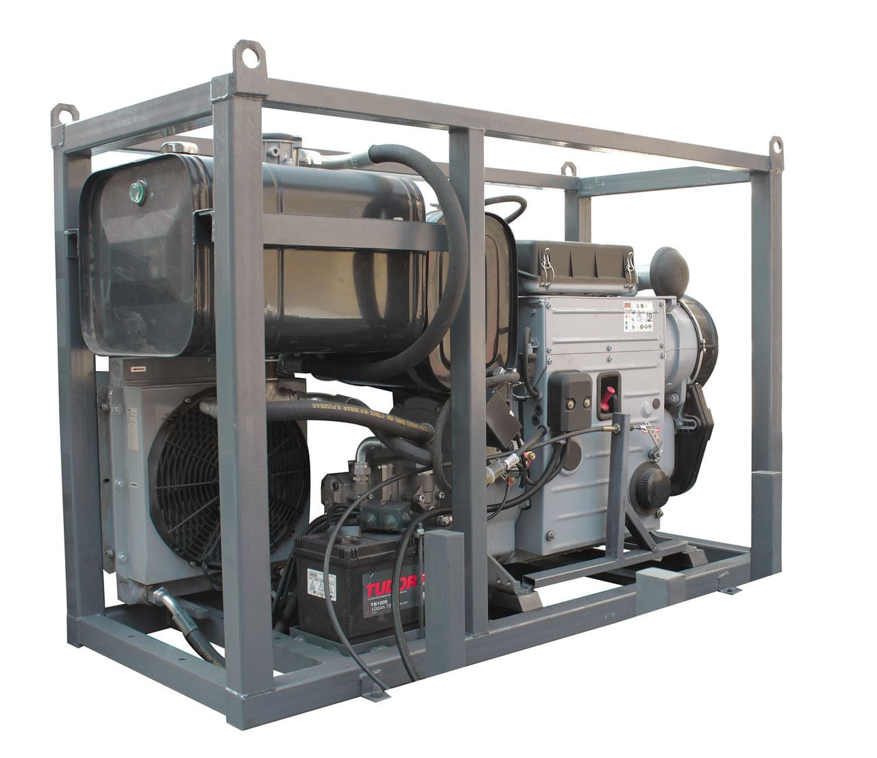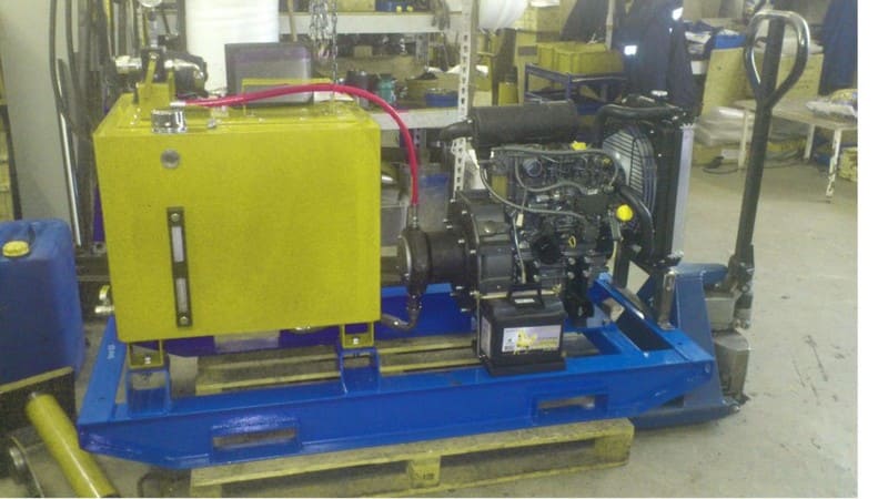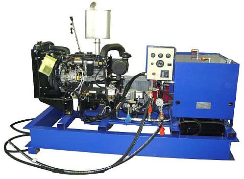 Дизельные гидростанции это полностью автономные насосные агрегаты с двигателем до 400 лошадиных сил, с максимальной подачей масла до 250 л/мин под давлением до 700 бар. Гидростанции обеспечивают работу погружных шламовых помп, буровых установок, противофонтанного оборудования, систем гидроприводов, вибропогружателей для свай, гидромолотов, земснарядов, машин бурошнекового бурения, манипуляторов, землеройных самоходных агрегатов. Эффективная система охлаждения позволяет длительно работать в интенсивном режиме с высокой производительностью. Изменением частоты вращения ДВС можно регулировать поток рабочей жидкости. В специальном исполнении агрегат выпускается в шумозащитном кожухе.