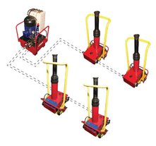 Гидростанции для гидравлических домкратов используются для привода устройств подъема и перемещения грузов. Станции обеспечивают подачу жидкости от 1,6 до 25 л/мин, с высоким давлением – до 700 бар. При работе подъемных механизмов определяющим является усилие на штоке, которое прямопропорционально максимальному давлению и площади поршня. Высокое давление позволяет снизить металлоемкость и массу домкрата. Объем бака определяется количеством масла, необходимого для заполнения всех домкратов в гидросистеме при выдвижении штока на полный ход, и обычно не превышает 250 литров.