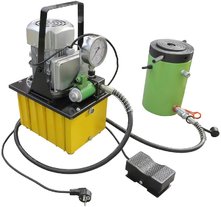 Это комплект, предназначенный для поднятия либо перемещения грузов массой от 100 до 700 тонн. Состоит из одного или нескольких домкратов и маслостанции с подачей от 1,6 до 10 л/мин под давлением от 350 до 700 бар. Станции оснащаются ручным или дистанционным управлением гидрораспределителем, электрическим мотором либо ДВС. Ход домкрата составляет от 15 до 350 мм, шток комплектуется шаровой опорой. Для удобства работы можно использовать подкатной домкрат - изделие у которого домкрат и гидростанция сагрегатированы на платформе с колесами.
