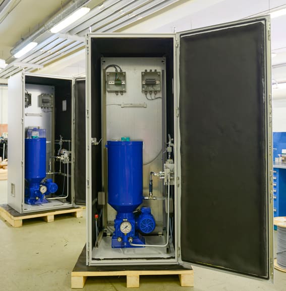 К гидростанциям для смазки предъявляют особые технические требования по компановке и комплектации. Основная сфера применения – смазка подшипников скольжения и других узлов в мощном технологическом оборудовании: производственных станках, прокатных станах, турбинах и роторах, мельницах и дробилках. Подача смазочной жидкости составляет от 1 до 100 л/мин, что позволяет применять маслостанции для широкого спектра цехового оборудования, в том числе взрывозащищенного. Диапазон давления подачи составляет от 1,5 до 300 бар. Емкость бака рассчитывается исходя из потребностей устройств в смазке, как правило от 20 до 400 л.