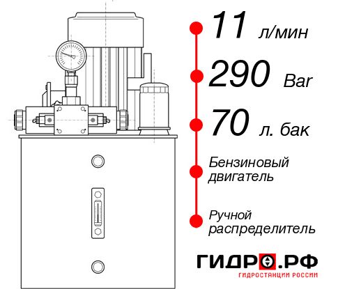 Гидростанция НБР-11И297Т с давлением 290 бар и потоком 11 л/м. Установлен бензиновый привод и гидравлический бак на 70 л. Распределитель гидравлический ручной. Цена с доставкой до Вашего цеха в Уфе 170983 руб. Рекомендуемая комплетация: цифровой управляющий манометр, радиоуправление, резьбовой порт дренажный, установка кранов на выходе.