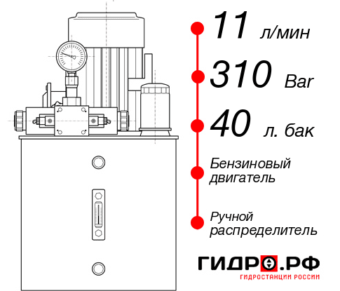 Маслостанция гидравлическая НБР-11И314Т с давлением 310 бар и производительностью 11 л/мин. В конструкции применён бензиновый двигатель и гидробак на 40 л. Распределитель гидравлический ручной. Срок изготовления до 2 дн. Цена с доставкой до производства в Уфе 209483 руб. Популярные дополнительные опции: несколько манометров.