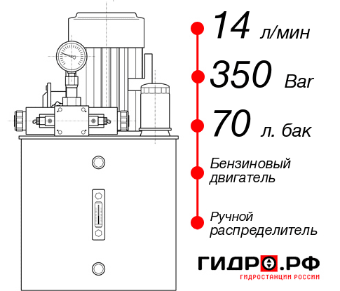 Гидростанция НБР-14И357Т с подачей 14 л/мин и давлением 350 атм. В конструкции используется гидробак на 70 л и бензиновый двигатель. Распределитель гидравлического потока ручной. Срок изготовления до 2 дней. Прайсовая цена с доставкой до адреса в Уфе 250695 руб. Рекомендуемые варианты дооснащения: система контроля циклов, электрошкаф, электрический датчик давления 4-2ма, регулятор потока, датчик давления.