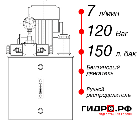 Маслостанция гидравлическая НБР-7И1215Т с давлением 120 bar и потоком 7 л/м. Установлен гидравлический бак на 150 л и бензиновый привод. Цена с доставкой до Вашего производства в Уфе 157056 руб. Популярные допопции: электронный манометр, термометр, манометр цифрового типа, шкаф электроуправления.