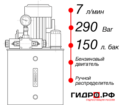 Маслостанция НБР-7И2915Т с давлением 290 атм и гидравлическим контуром 7 л/минуту. Установлен масляный бак на 150 литров и бензиновый силовой агрегат. Срок изготовления до 2 рабочих дней. Цена с доставкой до Вашего производства в Уфе 181161 руб. Рекомендуемые варианты дооснащения: дренажная магистраль, гидрозамок на выходных портах.