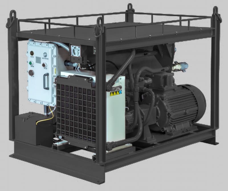 Шахтные гидростанции применяются для привода оборудования добычи полезных ископаемых подземным способом и подают гидравлическую энергию для работы конвейеров, стоек поддерживающей крепи, проходческих комбайнов, скреперно-струговых агрегатов. К насосной установке может подключаться и вспомогательное оборудование: гидроинструмент, домкраты, лебедки с гидроприводами, гидроцилиндры с гибким штоком ГГШ. Основной особенностью является эксплуатаця в условиях повышенной абразивной и коррозионной активности при ограниченном пространстве подземных выработок, потому гидростанции имееют низкую конструкцию с повышенной ремонтопригодностью. Применяются двигатели только в рудничном исполнении. В качестве рабочей жидкости используется водомасляная эмульсия, объем бака составляет от 63 до 400 литров.
